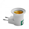 Патрон-переходник с Е27 на розетку с выключателем белый