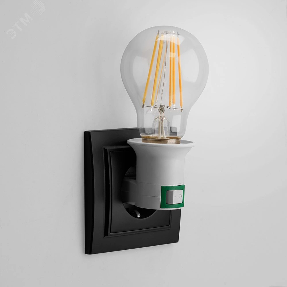 Позволяет подключить лампу с цоколем Е27 к стационарной розетке бытовой электросети 220V. Может использоваться с лампами накаливания или светодиодными лампами с цоколем Е27 мощностью до 40Вт.
