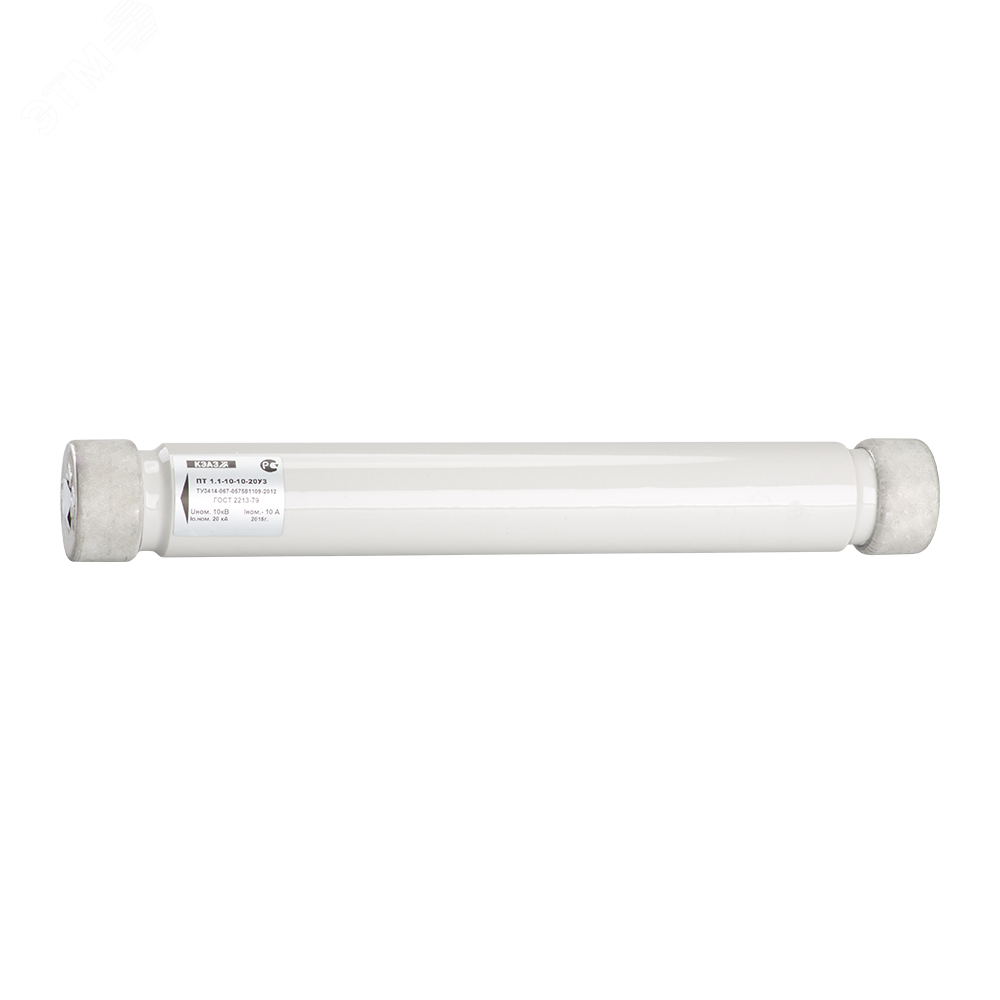 Высоковольтный предохранитель подсерии ПКТ на номинальный ток А с номинальным рабочим напряжением переменного тока 10000 В и предельной коммутационной способностью 20 кА. Предохранители высоковольтные серии ПКТ и патроны токоограничивающие ПТ производства КЭАЗ предназначены для защиты силовых трансформаторов, линий электропередач от перегрузок и токов коротких замыканий в трехфазных сетях напряжением до 10 кВ. Предохранители ПКТ в комбинации с выключателями нагрузки способны заменять дорогостоящие силовые выключатели.