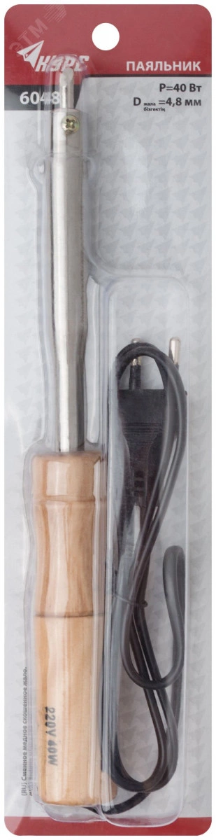 Паяльник 220 В, деревянная ручка, скошенное жало D=4.8 мм, 40 Вт