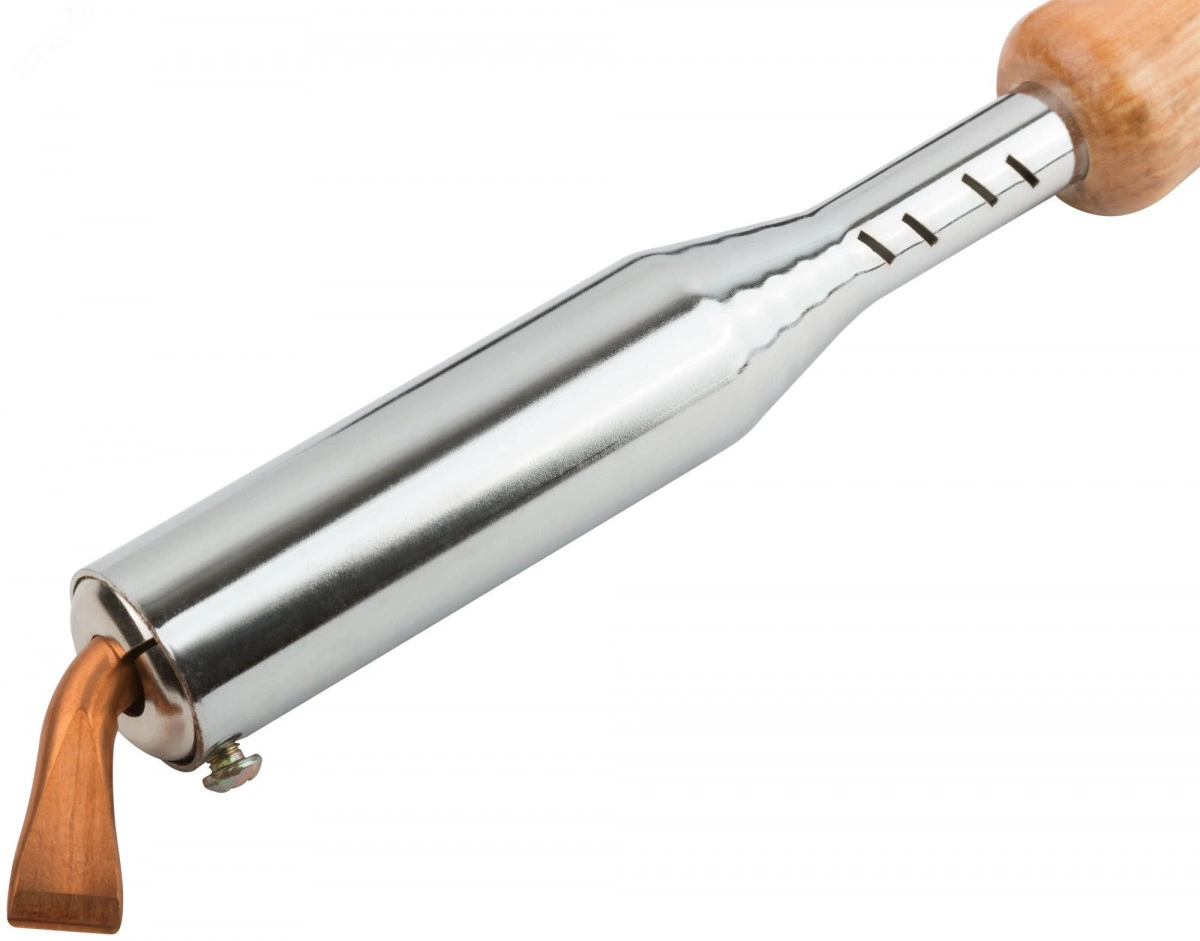 Паяльник повышенной мощности MOS предназначен для пайки толстых проводов и крупных деталей. Ручка паяльника изготовлена из древесины и не нагреваются, что особенно важно для мощных моделей. Съемное медное жало имеет форму клина, благодаря чему хорошо удерживает припой, а также обладает высокой теплопроводностью.