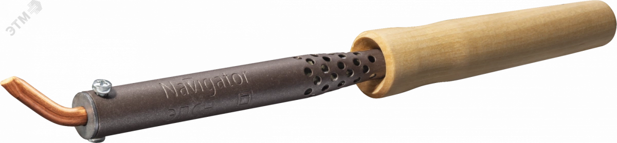 Электрические паяльники Navigator серии NSE-Pes01 предназначены для пайки электронных схем, электротехнических изделий и электропроводки. Жало паяльника, изготовленное из бескислородной 100 % меди марки М1, обладает высокой теплопроводностью и теплоемкостью. Рукоятка из березы отличается высоким термическим сопротивлением. Расплавленный припой ровно и быстро ложится на разогретое медное жало паяльника в процессе лужения. Нагревательный элемент высокой производительности обеспечивает быстрый нагрев рабочей части и имеет длительный срок службы. Жало паяльника зафиксировано двумя винтами, что обеспечивает его надежную фиксацию и простую замену. Радиатор паяльника изготовлен из прочной стали, что позволяет выдержать работу под давлением на рабочую часть. Деревянная рукоятка с желобком для большого пальца удобно лежит в руке.