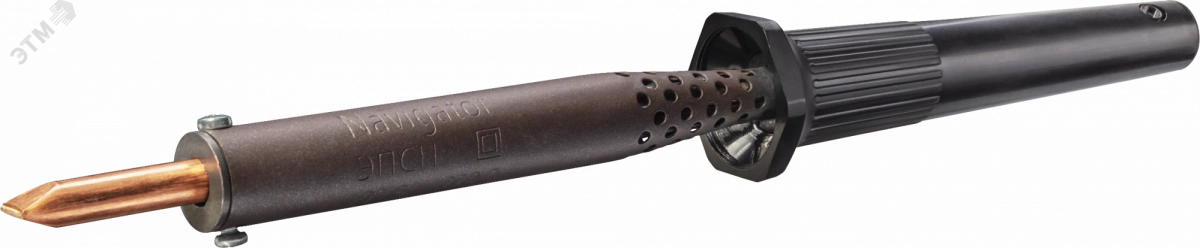 Электрические паяльники Navigator серии NSE-Pes02 предназначены для пайки электронных схем, электротехнических изделий и электропроводки. Жало паяльника, изготовленное из бескислородной 100 % меди марки М1, обладает высокой теплопроводностью и теплоемкостью. Рукоятка изготовлена из крепкого конструкционного пластика, имеет передний бортик-упор шестигранной формы. Расплавленный припой ровно и быстро ложится на разогретое медное жало паяльника в процессе лужения. Нагревательный элемент высокой производительности обеспечивает быстрый нагрев рабочей части и имеет длительный срок службы. Жало паяльника зафиксировано двумя винтами, что обеспечивает его надежную фиксацию и простую замену. Радиатор паяльника изготовлен из прочной стали, что позволяет выдержать работу под давлением на рабочую часть.