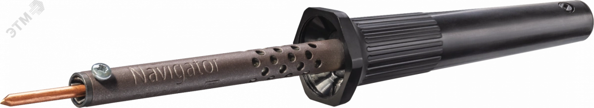 Электрические паяльники Navigator серии NSE-Pes02 предназначены для пайки электронных схем, электротехнических изделий и электропроводки. Жало паяльника, изготовленное из бескислородной 100 % меди марки М1, обладает высокой теплопроводностью и теплоемкостью. Рукоятка изготовлена из крепкого конструкционного пластика, имеет передний бортик-упор шестигранной формы. Расплавленный припой ровно и быстро ложится на разогретое медное жало паяльника в процессе лужения. Нагревательный элемент высокой производительности обеспечивает быстрый нагрев рабочей части и имеет длительный срок службы. Жало паяльника зафиксировано двумя винтами, что обеспечивает его надежную фиксацию и простую замену. Радиатор паяльника изготовлен из прочной стали, что позволяет выдержать работу под давлением на рабочую часть.