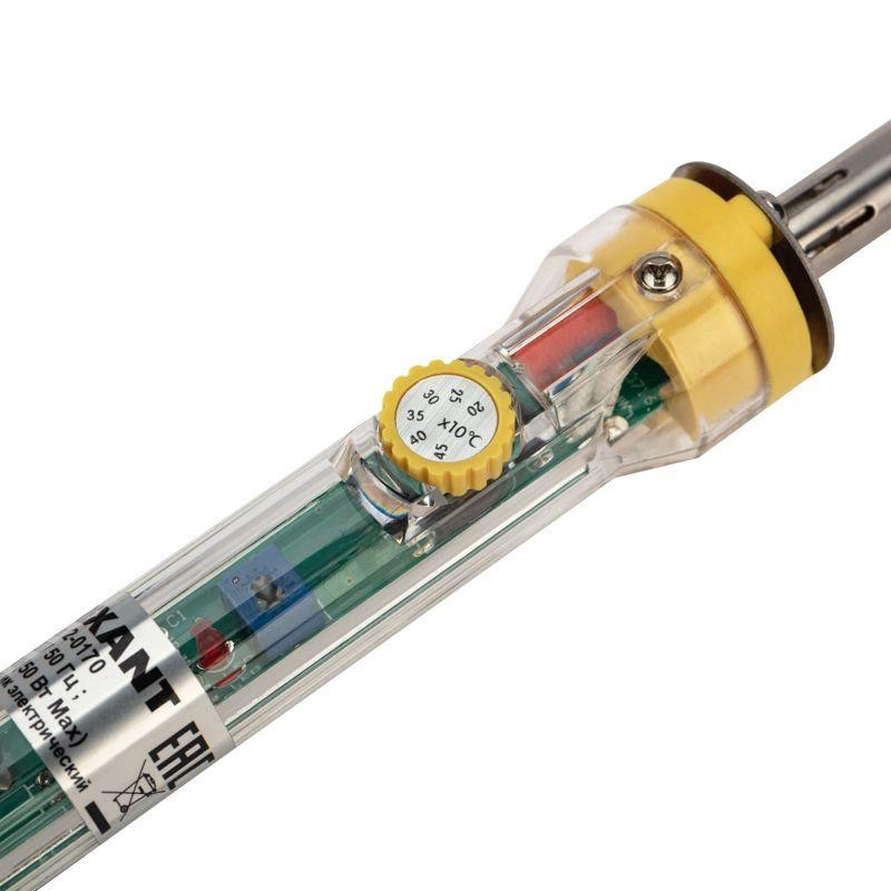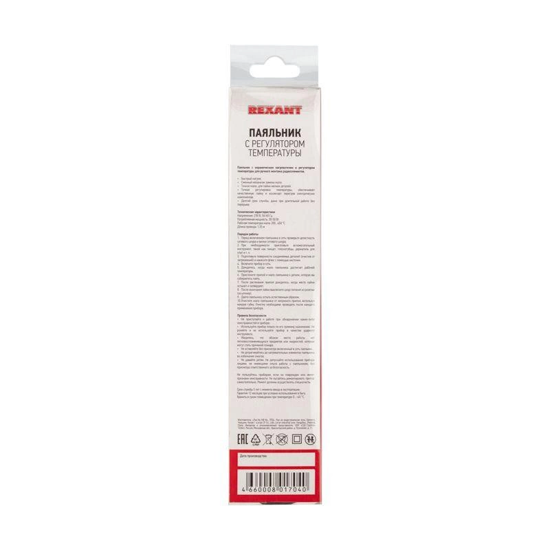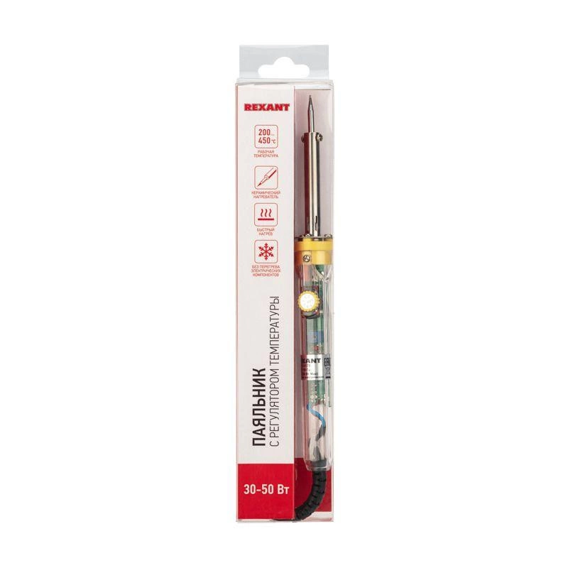 Паяльник с керамическим нагревателем и регулятором 30-50 Вт REXANT предназначен для ручного монтажа радиоэлементов. Характерной особенностью является возможность регулировать мощность нагрева в диапазоне 30-50 Вт.