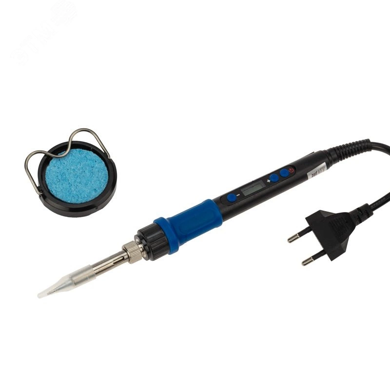 Паяльник с керамическим нагревателем и цифровым регулятором температуры REXANT предназначен для ручного монтажа радиоэлементов. Используется как в домашних условиях, так и в профессиональных мастерских. Сочетает в себе современный дизайн и компактный размер. Паяльник оснащен керамическим нагревательным элементом и долговечным жалом. В корпус устройства встроен цифровой регулятор, позволяющий устанавливать температуру в диапазоне от 200 до 500 градусовC. Широкий диапазон рабочих температур позволяет применять такой паяльник для самых разных задач. Острое тонкое жало оптимально подходит для точных работ с электронными компонентами. В случае необходимости его можно легко и быстро заменить (сменное жало в комплект не входит). Удобная эргономичная рукоятка из термостойкого пластика с резиновой накладкой сделает работу с инструментом легкой и приятной.