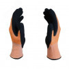 Бесшовная основа из нейлона мягко облегает руку и обеспечивает высокую чувствительность. Волокно HPPE (полиэтилен высокого давления), стекловолокно и стальное волокно добавленные в основу, обеспечивают максимальную износостойкость и высокую устойчивость к порезам и проколам. Двойное покрытие из вспененного нитрила дает дополнительную защиту от пореза и прокола, а также надежный захват даже влажных и масляных поверхностей. Перчатка комфортна в использовании даже при длительном ношении. Двойное покрытие из вспененного нитрила дает ограниченную защиту от масел и нефтепродуктов. Перчатки прекрасно подходят для использования при строительных работах, работе с режущим инструментом, стеклом и металлом. Удлиненный манжет мягко облегает запястье защищая его и предотвращает попадание мусора и вредных веществ внутрь перчатки.