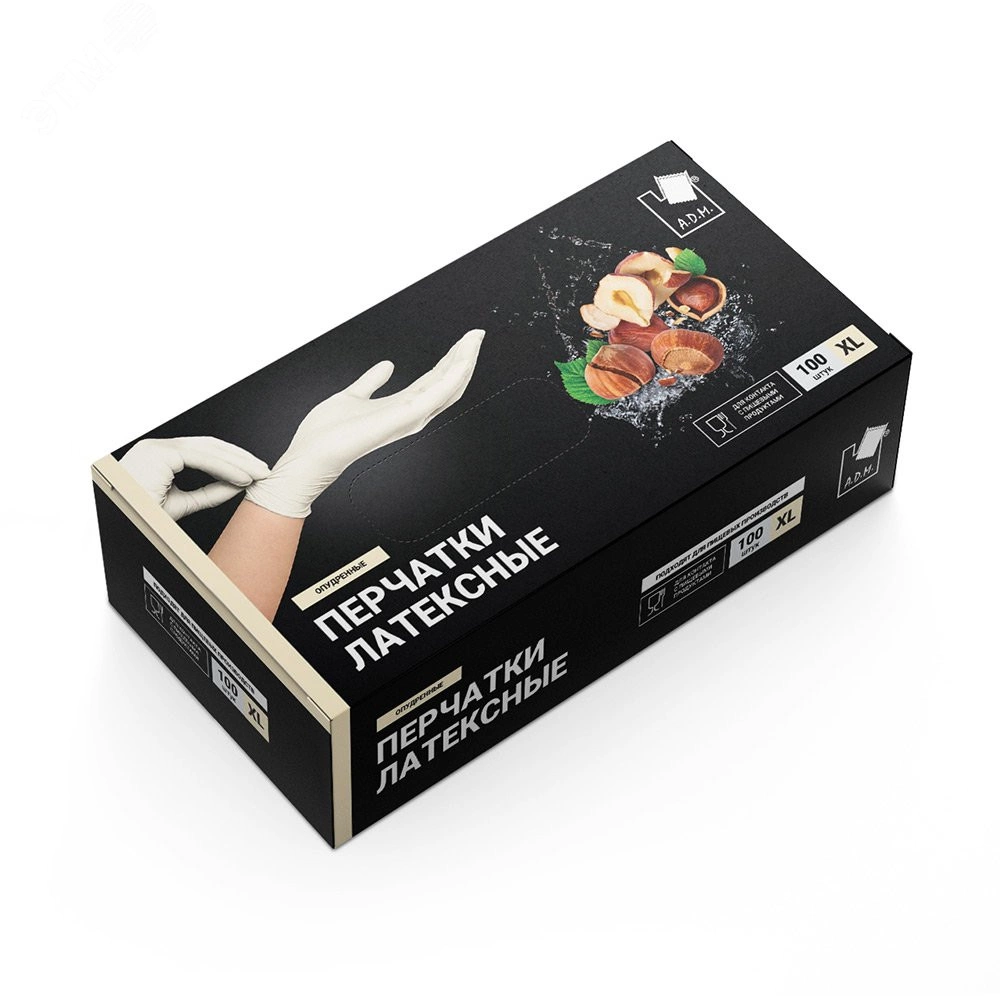 Латексные опудренные перчатки А.Д.М легко надевать и снимать благодаря внутреннему напылению. Напыление из кукурузного крахмала позволяет применять перчатки для контакта с пищевыми продуктами. Сохраняют высокую чувствительность пальцев.