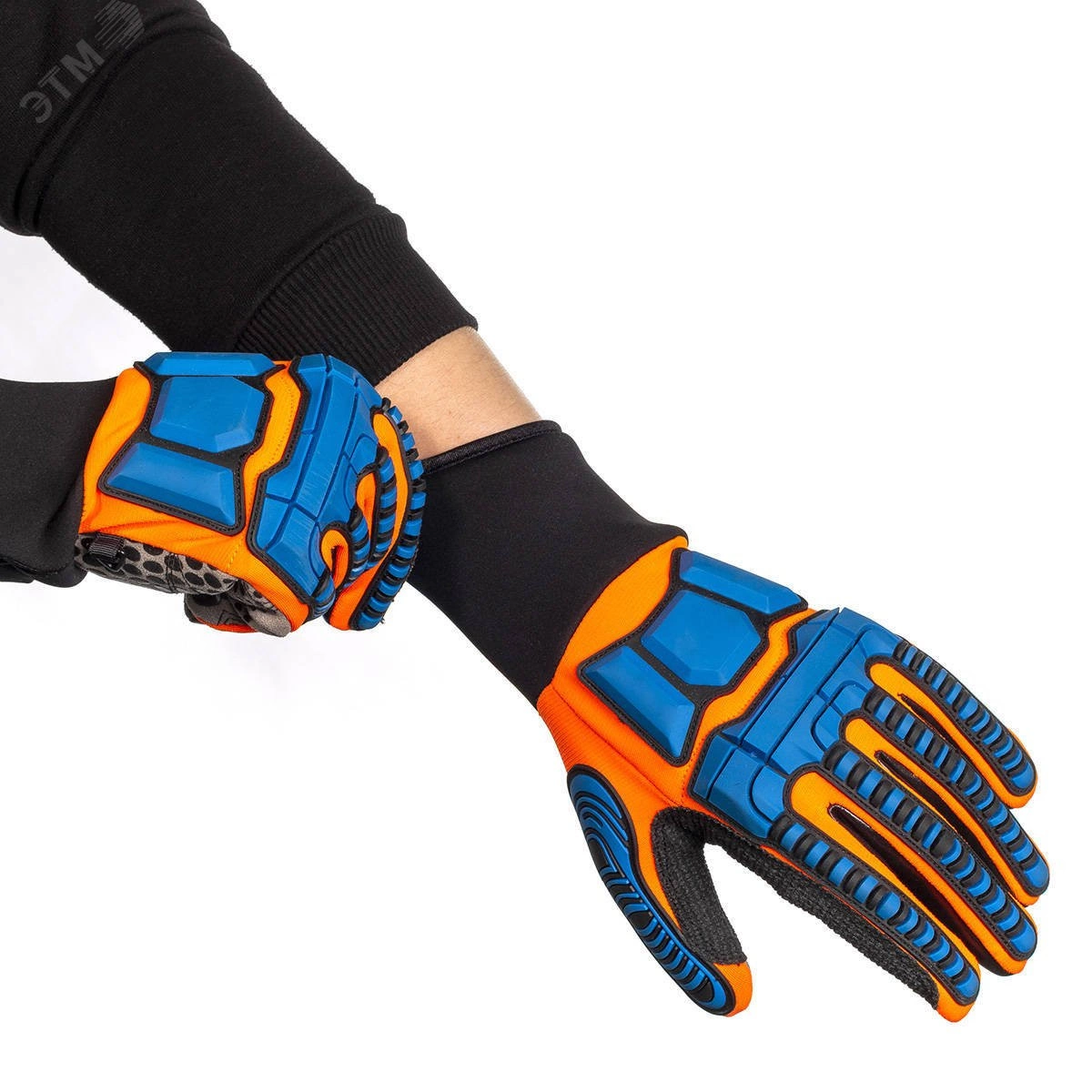 Прочные усиленные перчатки из качественных долговечных синтетических материалов. Поставляются двух размеров - M (8) и L (9). Состав - ладонная сторона - 100% синтетическая кожа с силиконовыми элементами тыльная сторона - 100% полиэстер с TPR-накладками, ладонная сторона - 100% синтетическая кожа с силиконовыми элементами, тыльная сторона - 100% полиэстер с TPR-накладками. Водо- и маслозащитный внутренний слой на ладонной стороне. Силиконовые точечные элементы на ладони и пальцах обеспечивают повышенное сцепление перчатки с предметами, предотвращая их выскальзывание. Специальный материал на тыльной стороне обеспечивает вентиляцию руки. TPR-накладки на тыльной стороне и пальцах перчатки защищают руку от удара. Удлиненный раструб предохраняет запястье