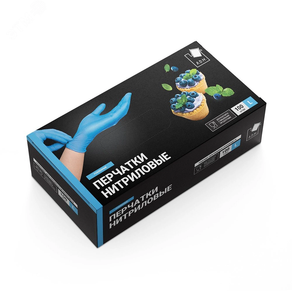 Перчатки нитриловые усиленные (9 гр) голубые L, 100 шт