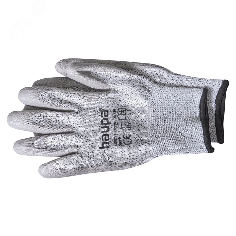 Перчатки для высоких механических нагрузок, предотвращение порезов благодаря прочности на разрез 3, материал - прочное ПЭВД - волокно, Полиуретановое покрытие внутренней поверхности кисти руки и кончиков пальцев, высокая устойчивость к истиранию, надежная хватка. Превосходная адаптация формы и комфорт. Область применения - монтажные работы, оборудование для точной механики с компонентами, имеющими заостренные кромки (металлические лотки, листовой металл и т.д.)Размер 11 - XXL