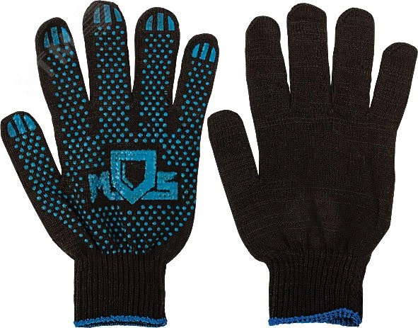 Перчатки вязаные черные х/б с ПВХ, 4 нити, 10 класс вязки