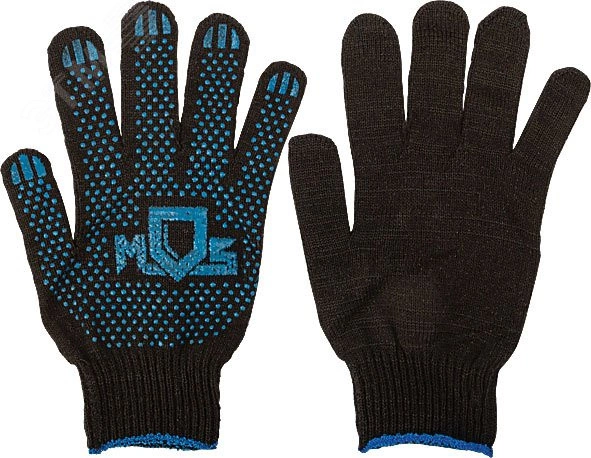 Перчатки вязаные упрочненные (5 нитей) черные х/б с ПВХ