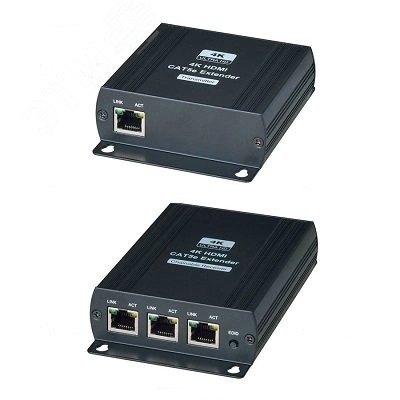 Комплект (передатчик + приёмник) предназначен для передачи HDMI сигнала с разрешение до 4К по одному кабелю витой пары на расстояние до 120м (CAT5e), до 140м (CAT6). Возможно каскадное подключение нескольких (до 250-ти) мониторов. Общая протяжённость линии передачи может достигать 2.5 км.