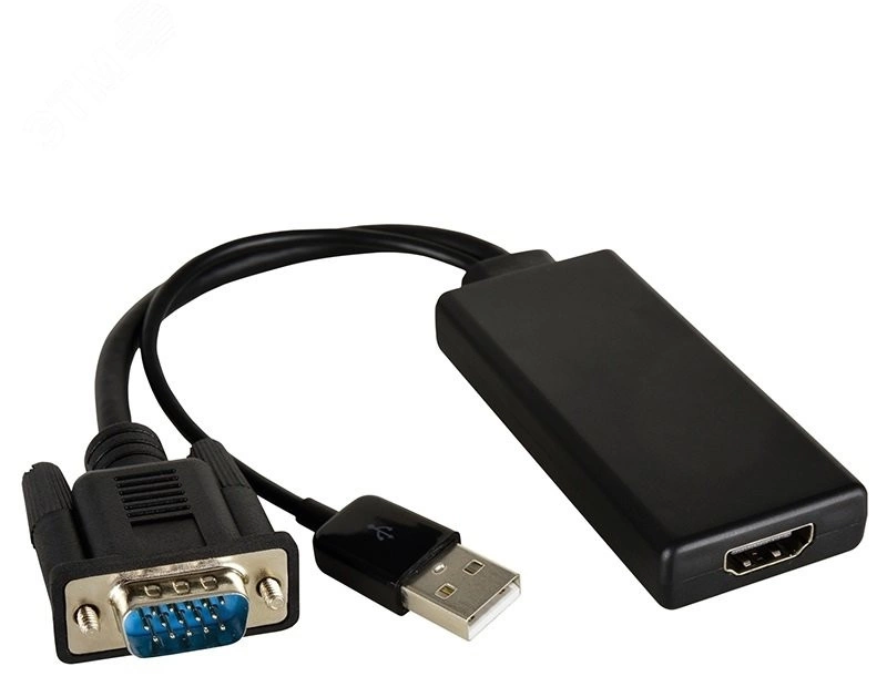 Переходник активный VGA M на HDMI F, 1080p, питание USB, черный