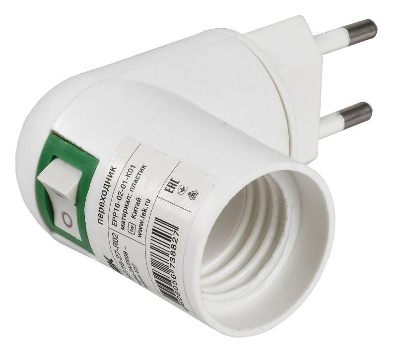 Полное описание: Переходник ПР7/16-27-R02 вилка 220В-патрон Е27 пластик бел. IEK EPP16-02-01-K01