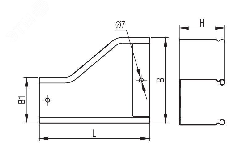 Элементы, входящие в состав системы ''S5 Combitech'' позволяют предусмотреть любые особенности проектирования и монтажа трассы. При построении кабельных трасс может возникать ситуация, когда требуется увеличить или уменьшить ширину лотка. Для этого применяется переходник (редукция) - аксессуар, имеющий разную ширину в начале и в конце. Левосторонняя редукция - аксессуар, который расширяется с левой стороны. Такой конструктив позволяет размещать переходник вплотную к стене. Ширина его составляет 100 мм в узкой части и 300 мм - в широкой. Максимальная степень пыле- и влагозащиты - IP44 (при использовании вместе с крышкой). Высота - 100 мм. Аксессуары в исполнении ''Цинк-ламель'' имеют специальное покрытие на основе химически активной магниевой смолы, в которую добавлены хлопья алюминия и цинка. Такое покрытие обеспечивает электрохимическую и барьерную защиту от коррозии. Показатели коррозионной стойкости цинк-ламельного покрытия ДКС аналогичны показателям горячеоцинкованного покрытия.