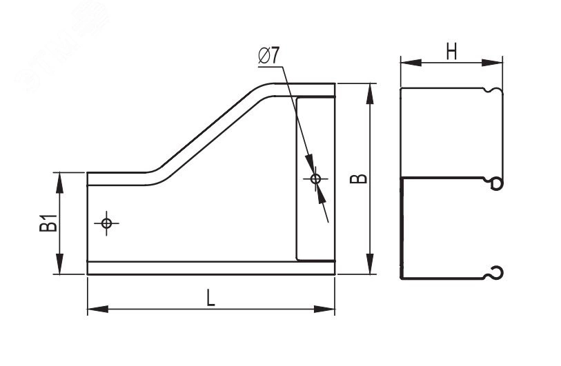 Переходник (редукция) – аксессуар, имеющий разную ширину в начале и в конце. Левосторонняя редукция – аксессуар, который расширяется с правой стороны. Такой конструктив позволяет размещать переходник вплотную к стене. Ширина его составляет 200 мм в узкой части и 400 мм – в широкой. Максимальная степень пыле- и влагозащиты – IP 44 (при использовании вместе с крышкой). Высота - 80 мм. В состав комплектного аксессуара входят необходимые крепежные элементы и соединительные пластины. Аксессуары в исполнении ‘Цинк-ламель‘ имеют специальное покрытие на основе химически активной магниевой смолы, в которую добавлены хлопья алюминия и цинка. Такое покрытие обеспечивает электрохимическую и барьерную защиту от коррозии. Показатели коррозионной стойкости цинк-ламельного покрытия ДКС аналогичны показателям горячеоцинкованного покрытия.
