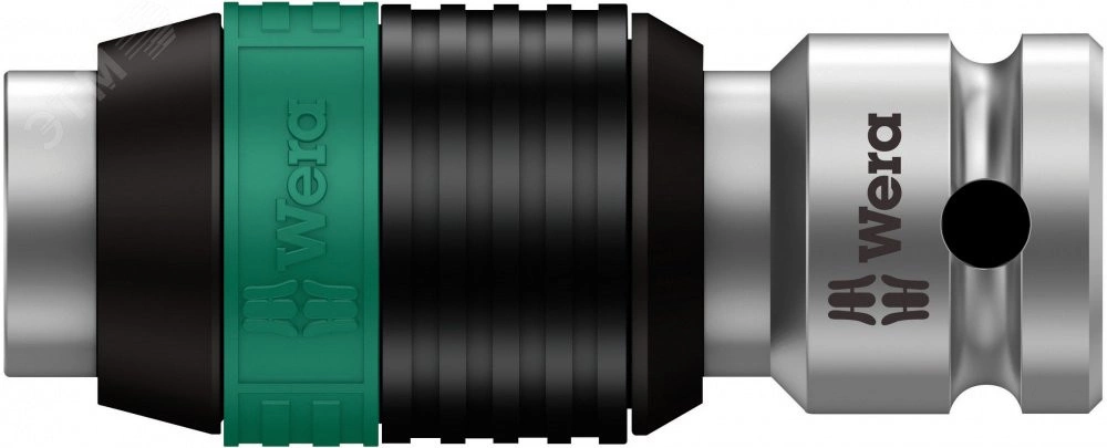 Переходник с квадрата на шестигранник. Для битов с шестигранным хвостовиком 1/4'' по стандарту DIN ISO 1173-C 6,3 и E 6,3 и с типами хвостовика Wera 1 и 4. С быстрозажимным патроном.