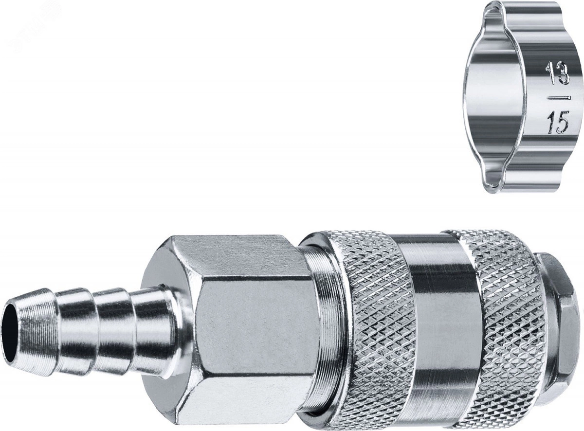 Переходник штуцер ''елочка'' 10 мм - рапид муфта, с хомутом Профессионал