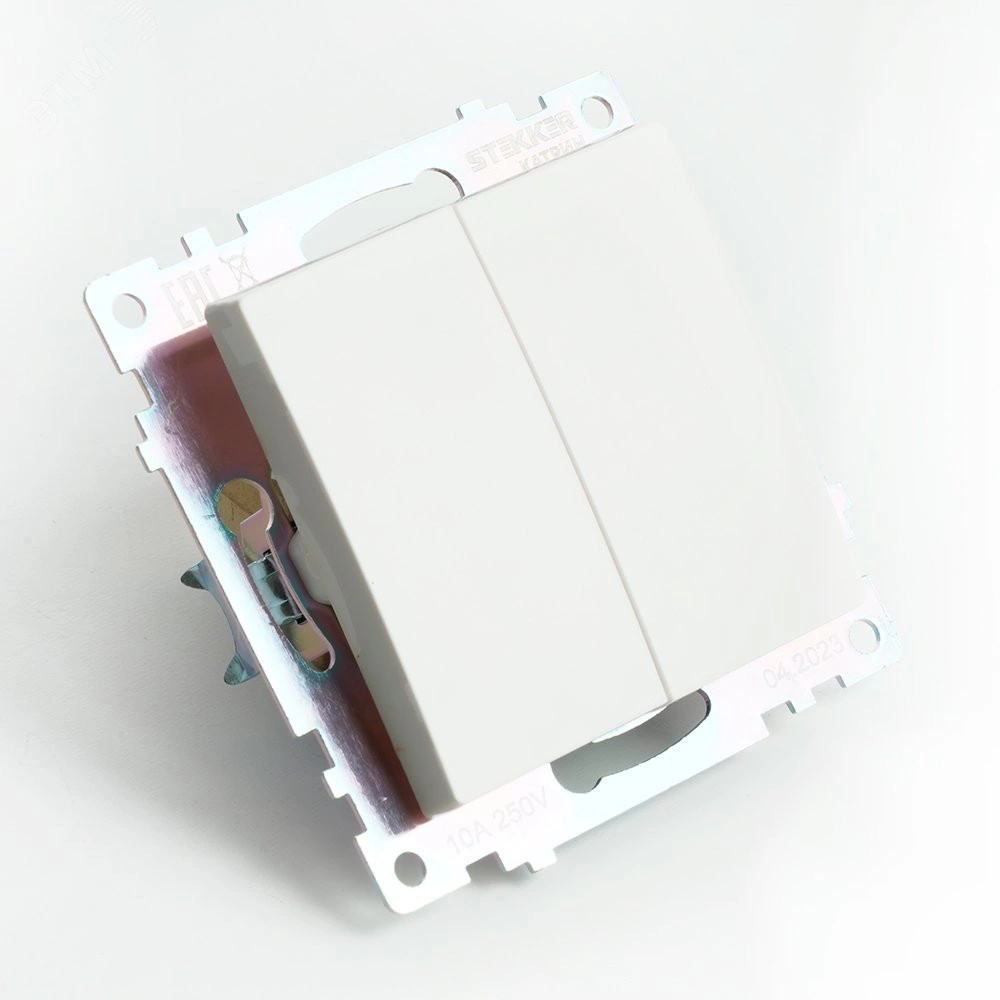 Выключатель двухклавишный STEKKER GLS10-7107-01, серия Катрин тип установки - скрытый, размер изделия 55*55*35мм., цвет белый, материал изделия ABS пластик, латунь. Номинальное напряжение 250 , номинальный ток 10А, IP20 Серия Катрин ''ТМ Stekker'' лаконичное и стильное решение для любого интерьера. Широкая цветовая гамма механизмов и стеклянных рамок позволяет реализовывать стильные решения и создавать уникальные акценты. Комбинации рамок и механизмов можно подобрать таким образом, чтобы создать уникальный ансамбль с освещением.