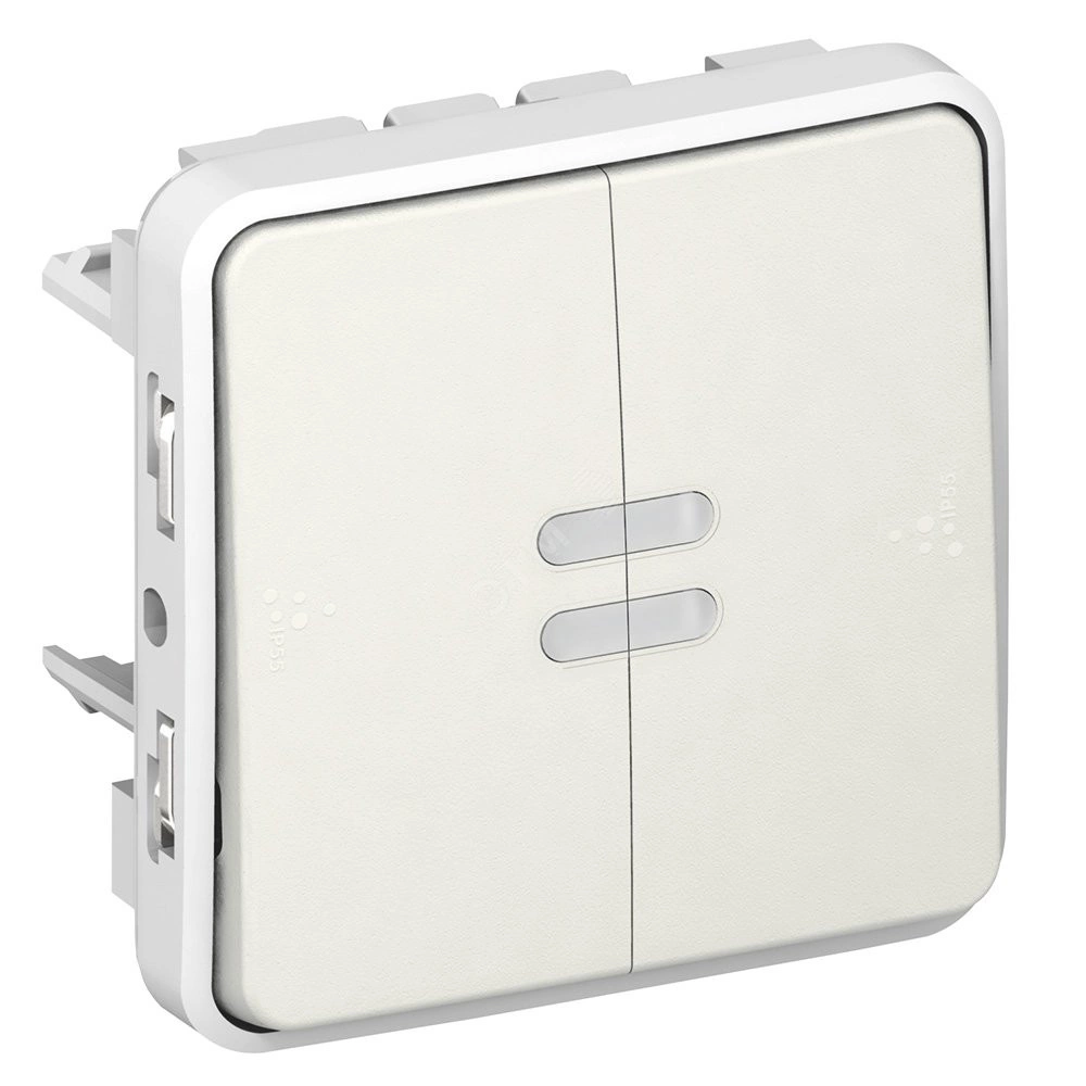 Переключатель двойной с подсветкой и лампой, цвет белый