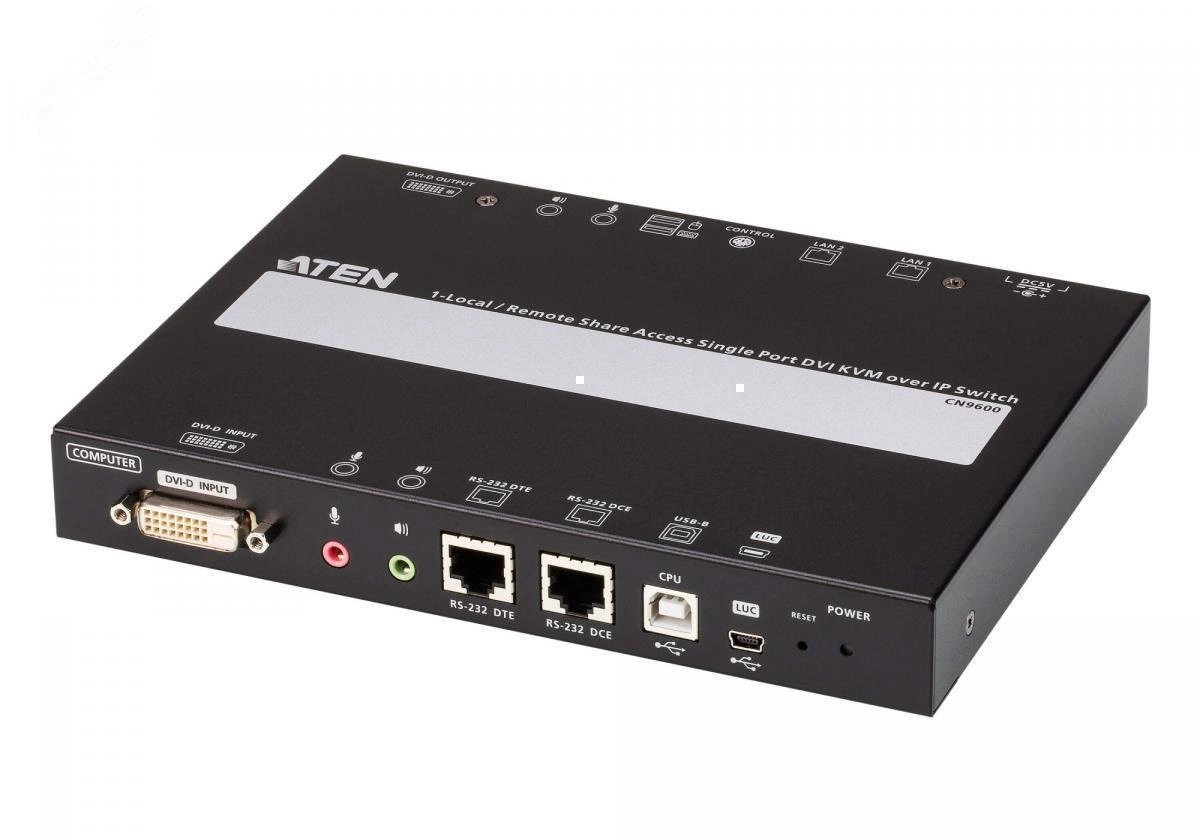 DVI KVM переключатель ATEN CN9600 - это экономичное устройство с IP-подсоединением, которое позволяет получить удаленный доступ к цифровому изображению, звуку и функции поддержки виртуальных носителей через удаленное управление ПК или рабочей станцией. Соединяясь с совместимым DVI KVM-переключателем и/или KVM-консолью с ЖК-дисплеем компании ATEN (например, с 8-портовым USB DVI KVM-переключателем CS1768 или DVI KVM-консолью CL3800), CN9600 добавляет им возможность доступа по IP. По сравнению с предыдущими моделями CN9600 имеет более компактный и изящный дизайн корпуса, что способствует экономии места. В нем используется графический FPGA-процессор, обеспечивающий пользователям наилучшее качество изображения и видео, а также соответствие стандартам RS-232 DTE/DCE для управления по последовательному подключению.