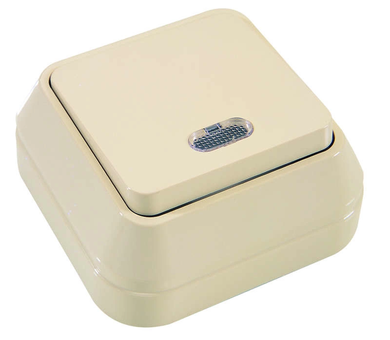 Переключатель проходной 1-кл. ОП 10А IP20 с подсветкой крем. Makel 45225