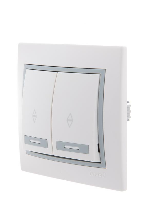Полное описание: Переключатель проходной 2-кл. СП Mira 10А с сер. вставкой бел. LEZARD 701-0215-106