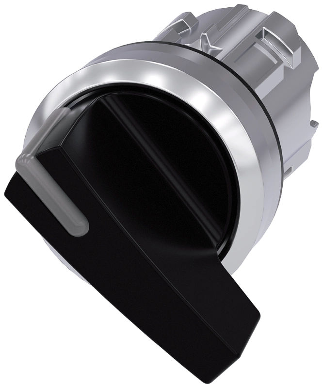 Переключатель рычажный с подсветкой 22 мм кругл. глянцевый металл цвет: черн. рукоятка длинная 2 положения переключателя с фиксацией угол переключения 90град. 10:30ч/13:30ч Siemens 3SU10522CF100AA0