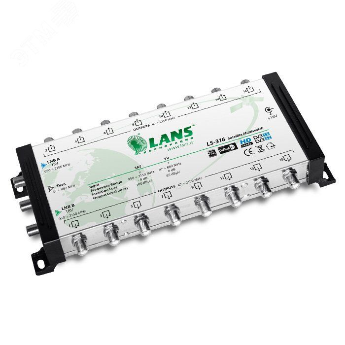 Переключатель 3 х 16 с ТВ входом, активный. Мультисвич (Multiswitch), так же его могут называть переключателем — это устройство позволяющие подключить к антенне несколько ресиверов или телевизоров. И получить независимый просмотр каналов в разных поляризациях на всех устройствах.