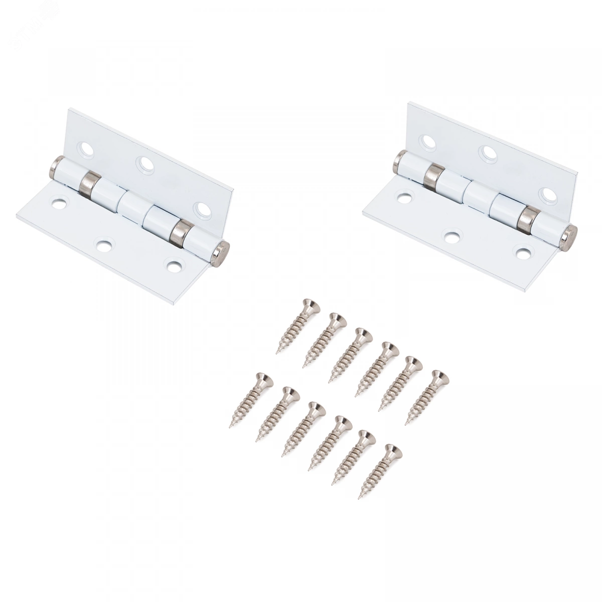 Петля дверная универсальная. Предназначена для установки на левые и правые двери. Материал - сталь, гальваническое покрытие. Размер петли - 77х64х2,5мм. 2 подшипника, плоский колпачок.