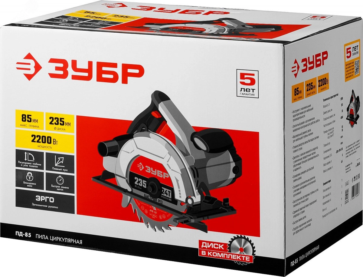 Характеристики ЗУБР ПД-85