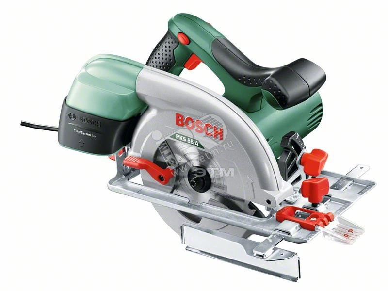 Дисковая пила Bosch PKS 55 A 0.603.501.020 - инструмент, предназначенный для распиливания под различными углами деревянных заготовок толщиной до 55 мм. При помощи специального диска возможен рез алюминиевого или стального листа. Высокая мощность двигателя обеспечивает качественный рез. Для безопасности эксплуатации пилы предусмотрена блокировка случайного пуска - случайное включение исключено.