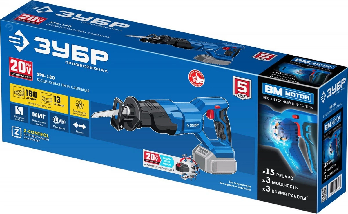 Пила сабельная бесщеточная 20В, без АКБ, в коробке, Профессионал