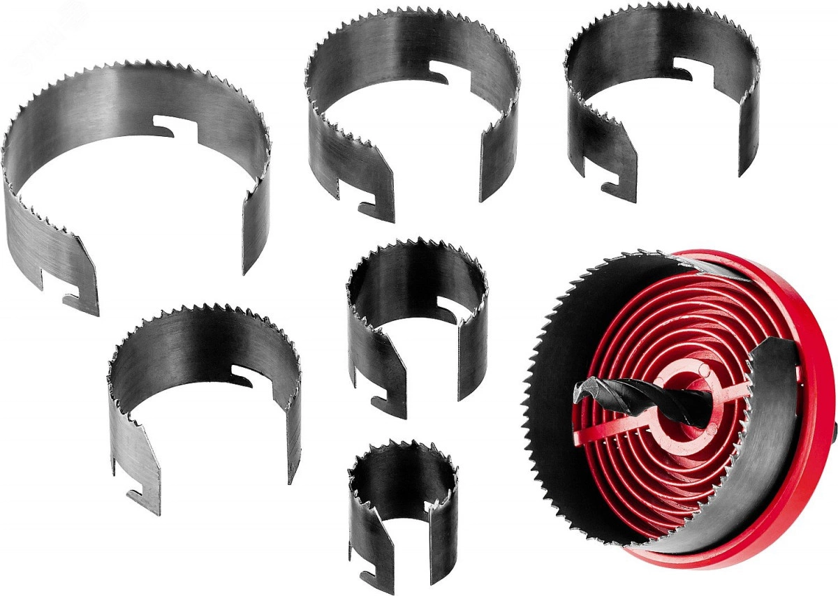 Пила сегментная наборная по дереву 7шт (26-63/18мм), 26-32-38-45-50-56-63х18 мм