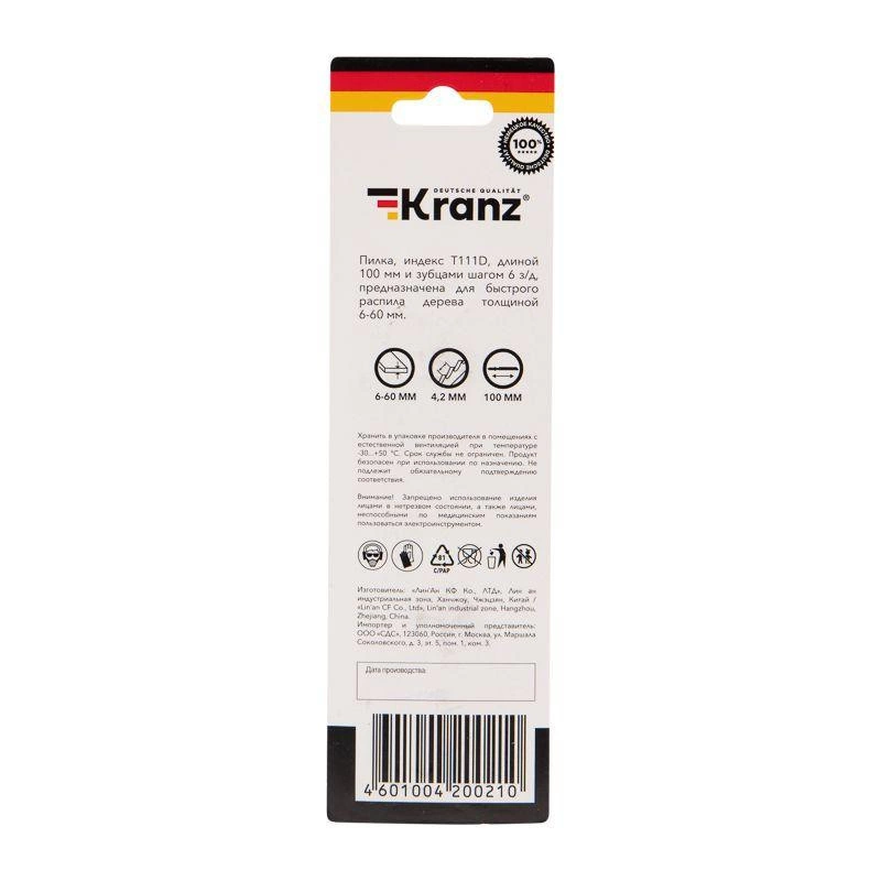Пилка для электролобзика по дереву T111D 100мм 6 зубьев на дюйм 6-60мм (уп.2шт) Kranz KR-92-0319
