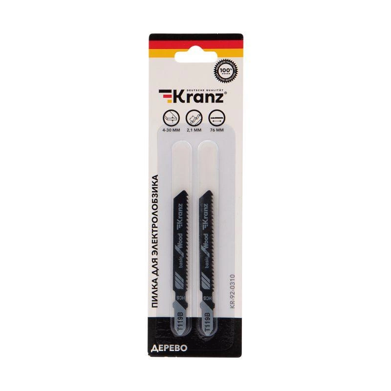 Полное описание: Пилка для электролобзика по дереву T119B 76мм 12 зубьев на дюйм 4-30мм (уп.2шт) Kranz KR-92-0310