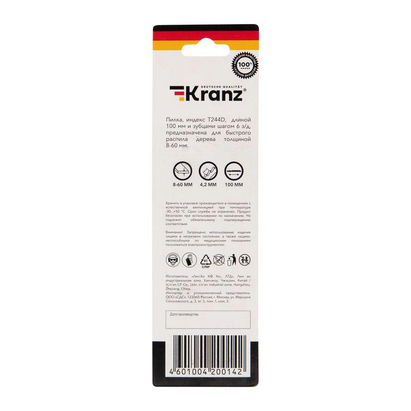Пилка для электролобзика по дереву T244D 100мм 6 зубьев на дюйм 8-60мм фигурный рез (уп.2шт) Kranz KR-92-0312
