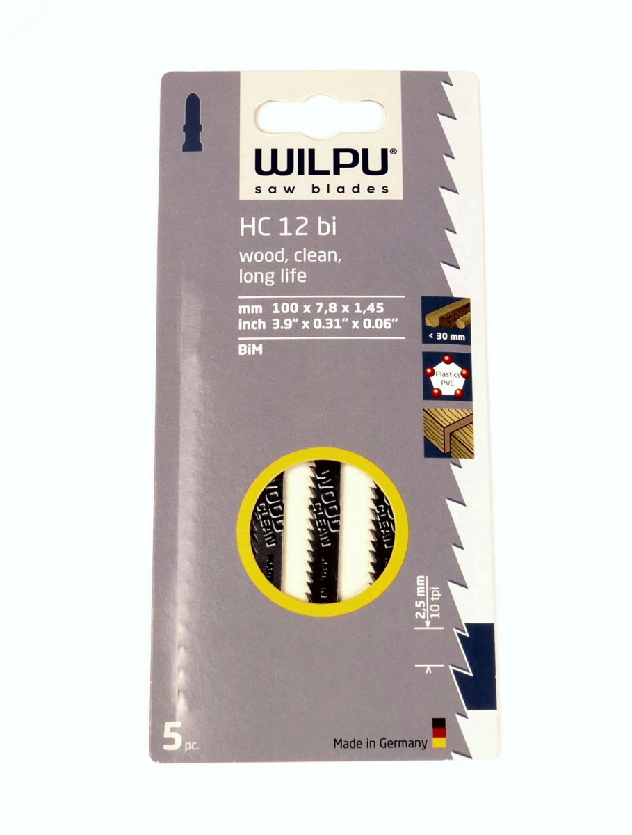 Пилка для лобзика HC 12bi х5шт/уп для дерева до 30мм, пластмассы (чистый рез)