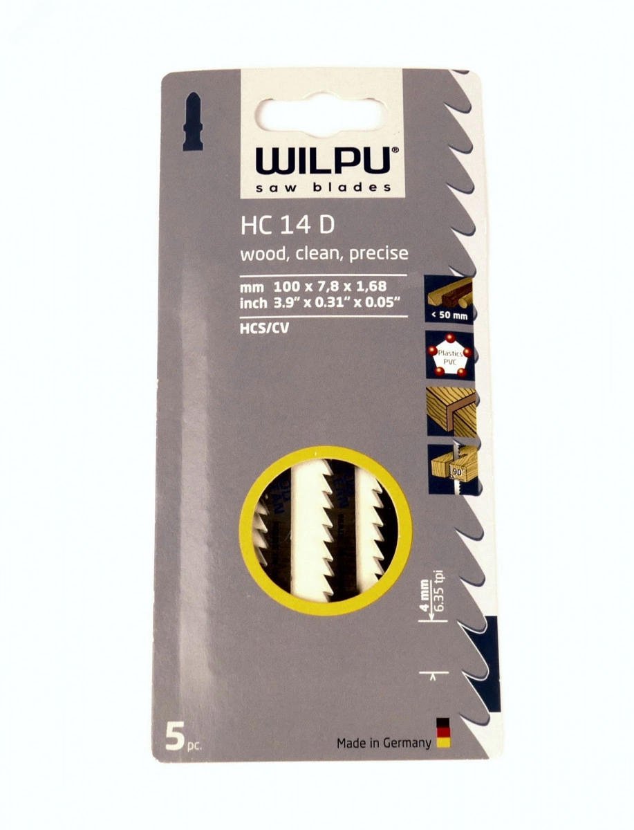 Пилка для лобзика HC 14 D х5шт/уп для дерева до 45мм и пластмассы (прямой, чистый рез)