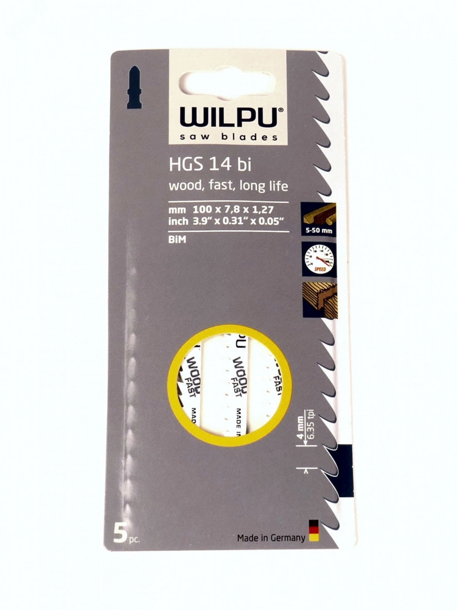 Пилка для лобзика HGS 14 bi х5шт/уп для дерева до 50мм (быстрый рез)