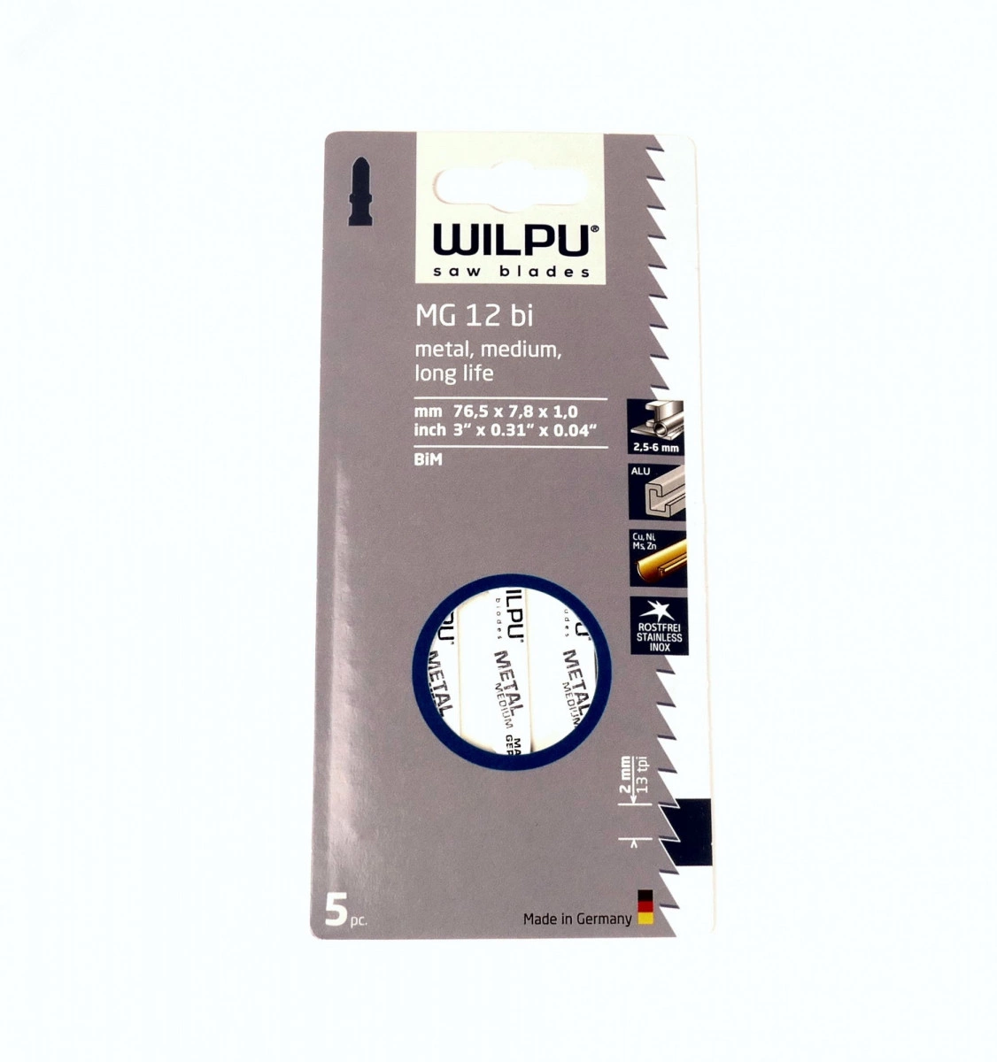 Пилка для лобзика MG 12 bi х5шт/уп для стали, нержавеющей стали, цветного металла, алюминия от 2,5 до 6мм