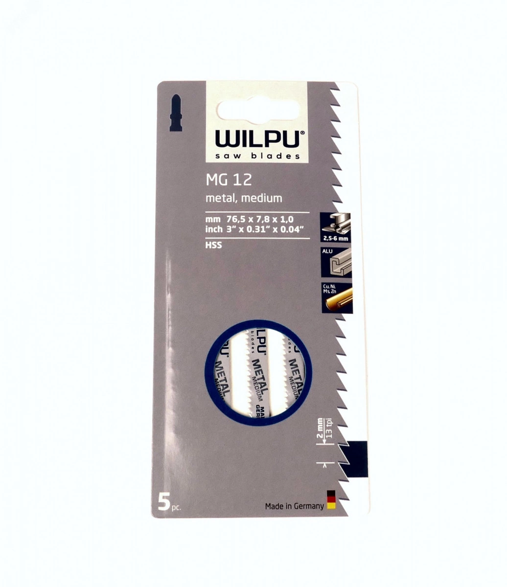 Пилка для лобзика MG 12 х5шт/уп для стали, нержавеющей стали, цветного металла, алюминия от 2,5 до 6мм