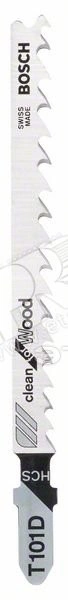 Лобзиковое пильное полотно T 101 D Clean for Wood позволяет выполнять чистые прямые пропилы в древесине. Гладко шлифованные зубья с телом сужающейся формы обеспечивают ровный результат. Полотно из высокоуглеродистой стали подходит для пиления мягкой древесины и неабразивных древесных материалов. Крупный прогрессивный шаг зубьев (4–5,2 мм) полотна позволяет пилить древесные материалы толщиной 10–45 мм. Для лобзиков с системами крепления с Т-образным хвостовиком.