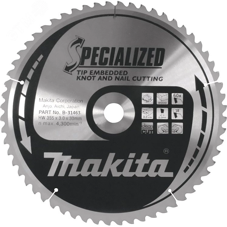 Пильные диски Makita B-31463 с размерами 355x30x3,0 мм и 60 зубьями отличаются высокой прочностью и долговечностью. Они изготовлены из высококачественных материалов, что обеспечивает их устойчивость к износу и механическим повреждениям. Благодаря специальной форме и твердосплавным напайкам на зубьях, диски способны эффективно резать не только обычную древесину, но и древесину с сучками, а также древесину, содержащую гвозди или шурупы.