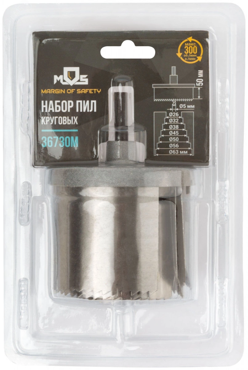 Каленый зуб. Для высверливания отверстий в древесине твердых и мягких пород, ДСП и фанере. В наборе 7 пил круговых - 26, 32, 38, 45, 50, 56, 63 мм. Материал - инструментальная сталь. Упаковка - двойной блистер.