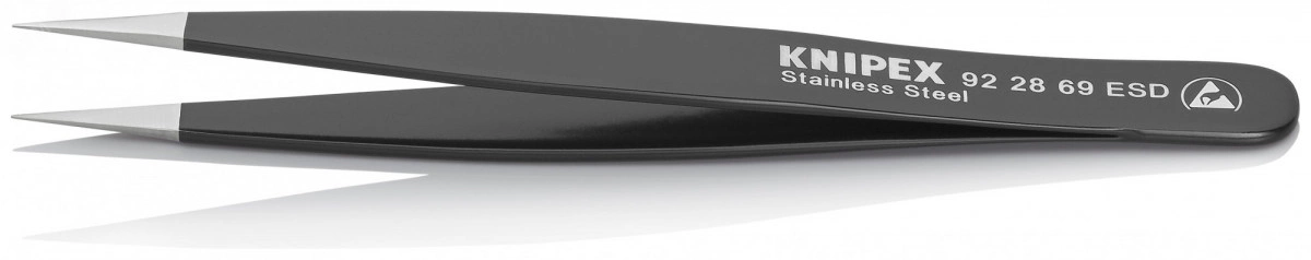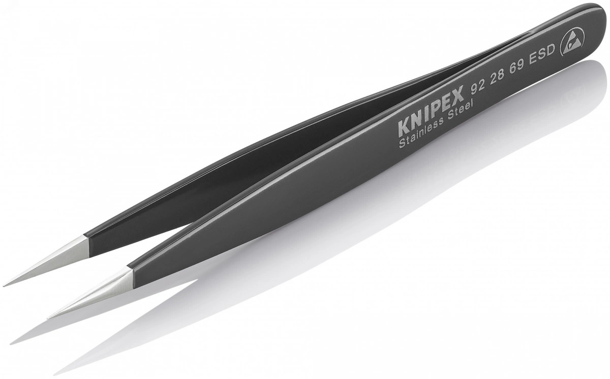 Универсальный пинцет ESD Безопасная работа с электронными компонентами в прецизионных областях применения - пинцет контролируемым образом компенсирует разность потенциалов между оператором и компонентом. Покрытие из черной эпоксидной смолы, прошедшее испытания на электростатический разряд, с поверхностным сопротивлением в диапазоне 10 в 4-ой - 10 в 9-ой Ом. Для электроники и прецизионного приборостроения. Антимагнитные характеристики, чтобы избежать электромагнитного повреждения. Широкий выбор вариантов конструкции - прямые, угловые, с гладкими или шершавыми захватными поверхностями и ручками, со вставочными иглами, с узкими или тупыми наконечниками. Высококачественная нержавеющая сталь обеспечивает чрезвычайную жесткость и очень хорошую коррозионную стойкость в различных атмосферных средах и со многими коррозионными материалами