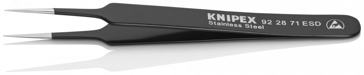 Универсальный пинцет ESD Безопасная работа с электронными компонентами в прецизионных областях применения - пинцет контролируемым образом компенсирует разность потенциалов между оператором и компонентом. Покрытие из черной эпоксидной смолы, прошедшее испытания на электростатический разряд, с поверхностным сопротивлением в диапазоне 10 в 4-ой - 10 в 9-ой Ом. Для электроники и прецизионного приборостроения. Антимагнитные характеристики, чтобы избежать электромагнитного повреждения. Широкий выбор вариантов конструкции - прямые, угловые, с гладкими или шершавыми захватными поверхностями и ручками, со вставочными иглами, с узкими или тупыми наконечниками. Высококачественная нержавеющая сталь обеспечивает чрезвычайную жесткость и очень хорошую коррозионную стойкость в различных атмосферных средах и со многими коррозионными материалами