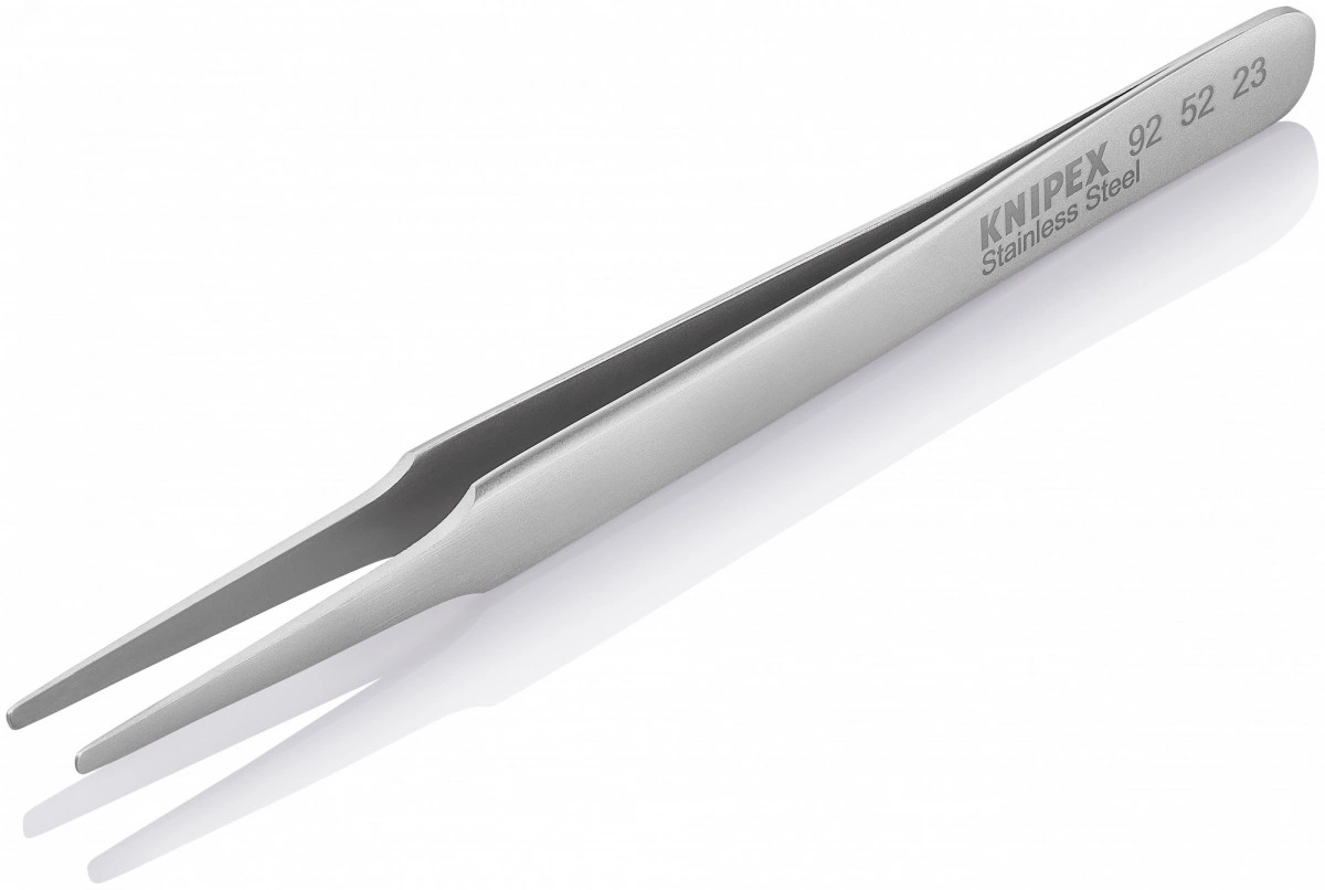 Пинцет захватный прецизионный Универсальный пинцет подходит для требований стандартных областей применения и прецизионных задач. Широкий выбор вариантов конструкции - прямые, угловые, с гладкими или шершавыми захватными поверхностями и ручками, со вставочными иглами, с узкими или тупыми наконечниками, а также в различных вариантах длины. Для электронной промышленности, часовщиков и ювелиров. Высококачественная нержавеющая сталь - чрезвычайно прочная и очень хорошая коррозионная стойкость к различным атмосферным воздействиям и многим агрессивным материалам